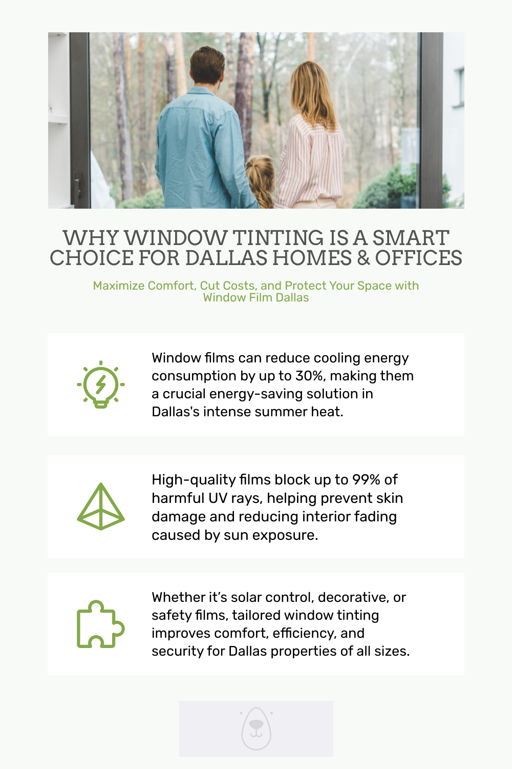 Window films are not just about improving the look of your glass windows; they offer numerous benefits that make them a smart investment for any property owner in Dallas: